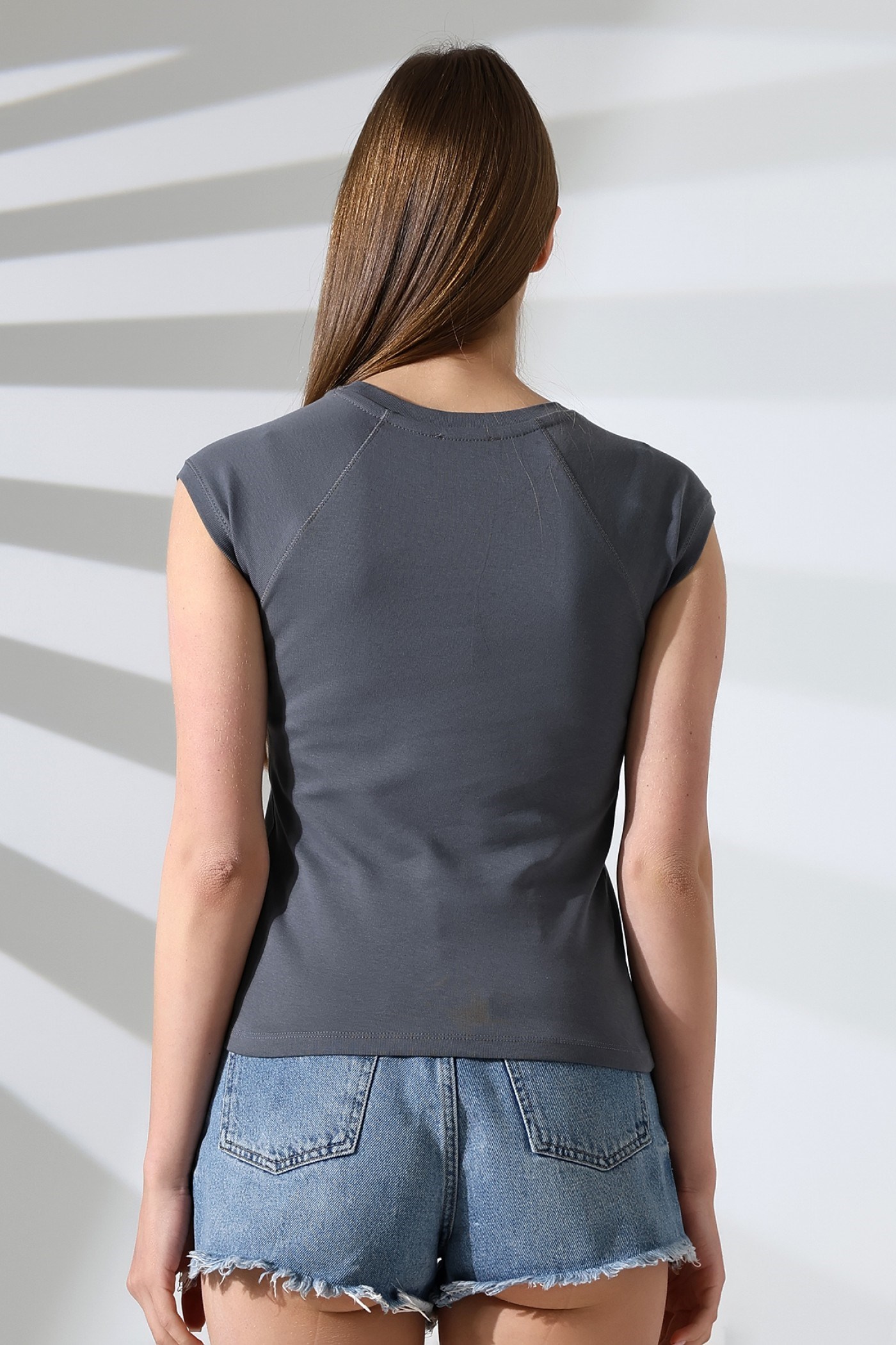 yanları yırtmaçlı bisiklet yaka geniş tişört