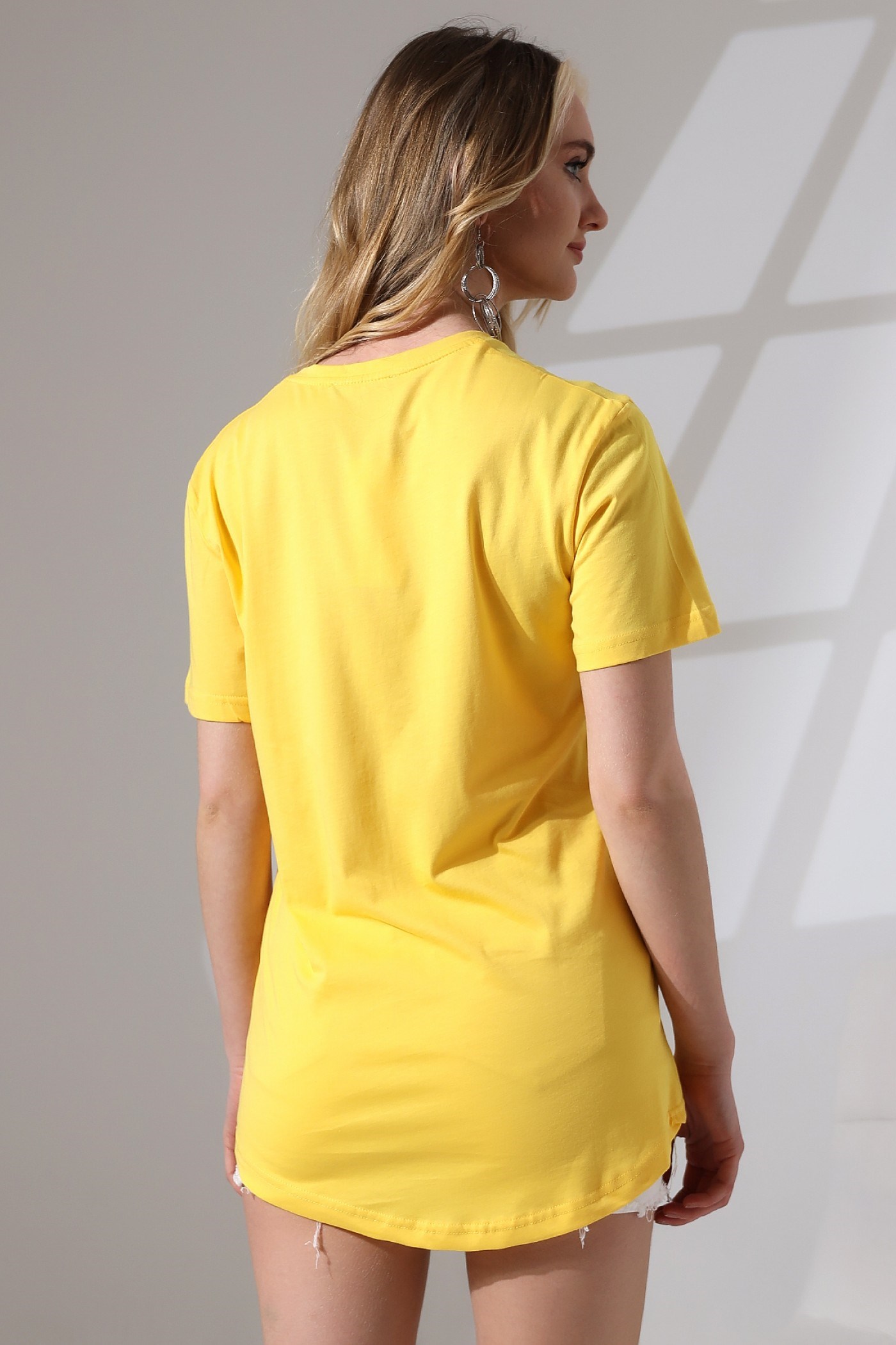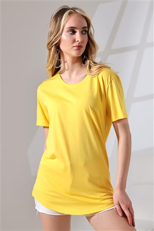 yanları yırtmaçlı bisiklet yaka geniş tişört